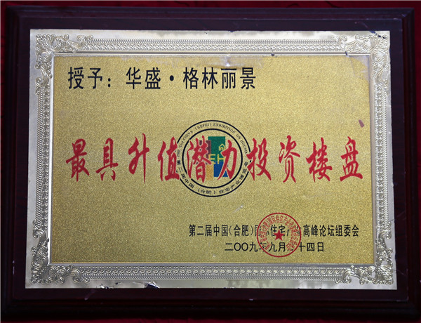 2009年荣获最佳品质人居典范楼盘(华盛·格林丽景)