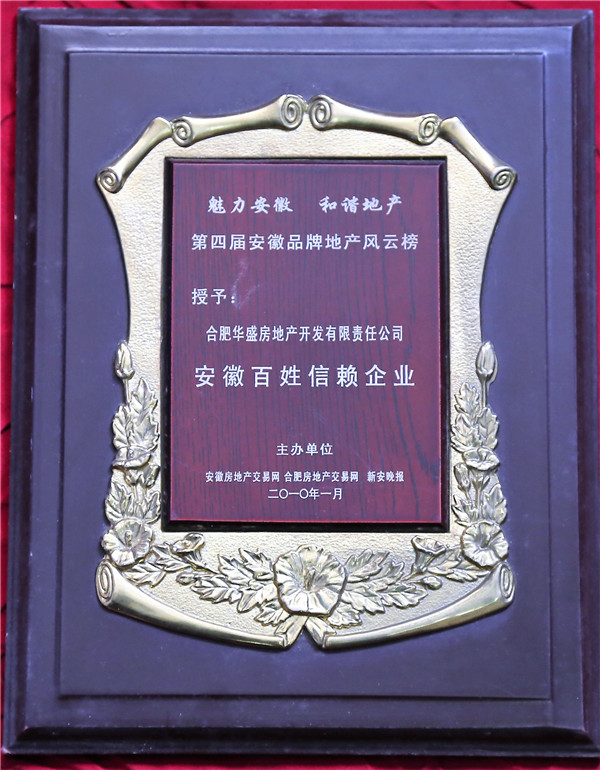 2010年度安徽百姓信任企业(安徽华盛房地产开发有限公司)